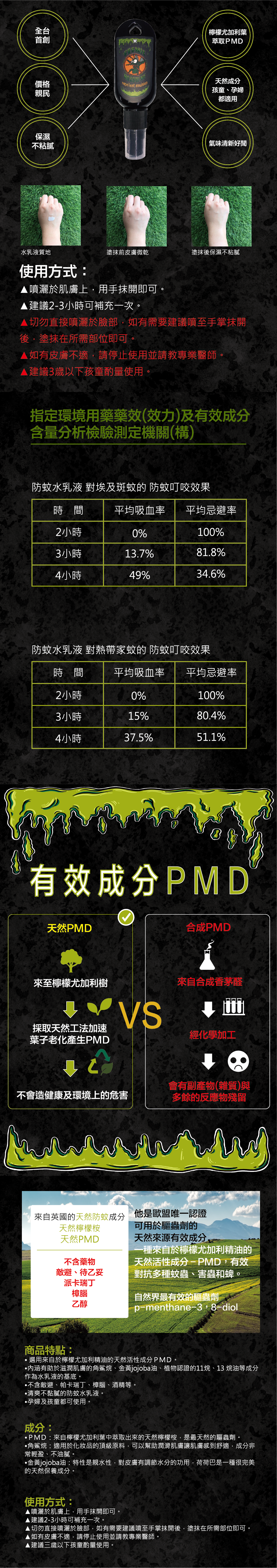 •PMD:來自檸檬尤加利葉中萃取出來的天然檸檬桉,是最天然的驅蟲劑。